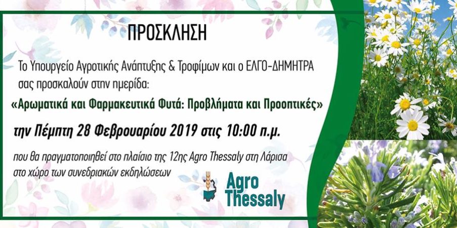Ημερίδα, στη Λάρισα, με τίτλο «Αρωματικά και Φαρμακευτικά Φυτά: Προβλήματα και Προοπτικές» πραγματοποιείται την Πέμπτη, στις 28 Φεβρουαρίου, 10.00-14.00, στη Δημοτική Σκεπαστή Αγορά Νεάπολης Δήμου Λαρισαίων.