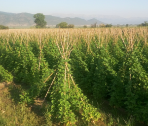 Καλλιέργειες των αναρριχώμενων φασολιών (Phaseolus vulgaris). Τα στηρίγματά τους είναι βλαστοί καλαμιών.