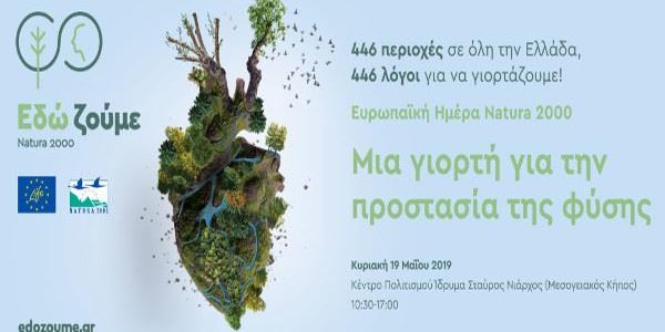 Οι εταίροι του Έργου LIFE-IP 4 NATURA διοργανώνουν εκδήλωση στον εορτασμό της Ευρωπαϊκής Ημέρας NATURA 2000, την Κυριακή 19 Μαΐου 2019, από τις 10:30 έως τις 17:00 στον Μεσογειακό Κήπο του Κέντρου Πολιτισμού Ίδρυμα Σταύρος Νιάρχος.
