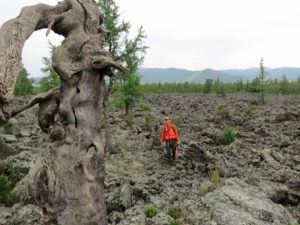 Ο ερευνητής John Quinn Burkhart μέσα σε αρχαία δέντρα στα βουνά Khangai της Μογγολίας