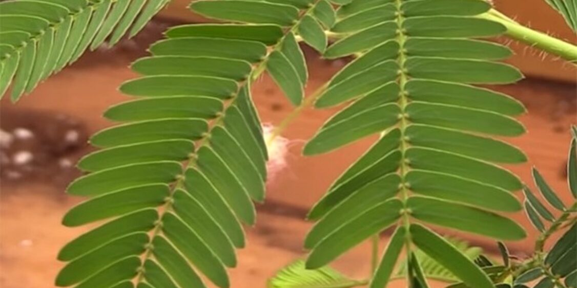 Φύλλα της μμόζας, ένα από τα οποία άρχισε να διπλώνει μετά από άγγιγμα με το χέρι